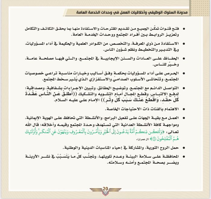 في تشرين الثاني نوفمبر 2022، وجه رئيس المجلس السياسي لأنصار الله مهدي المشاط، باعتماد ما سماها "مدونة السلوك الوظيفي وأخلاقيات العمل" في وحدات الخدمة